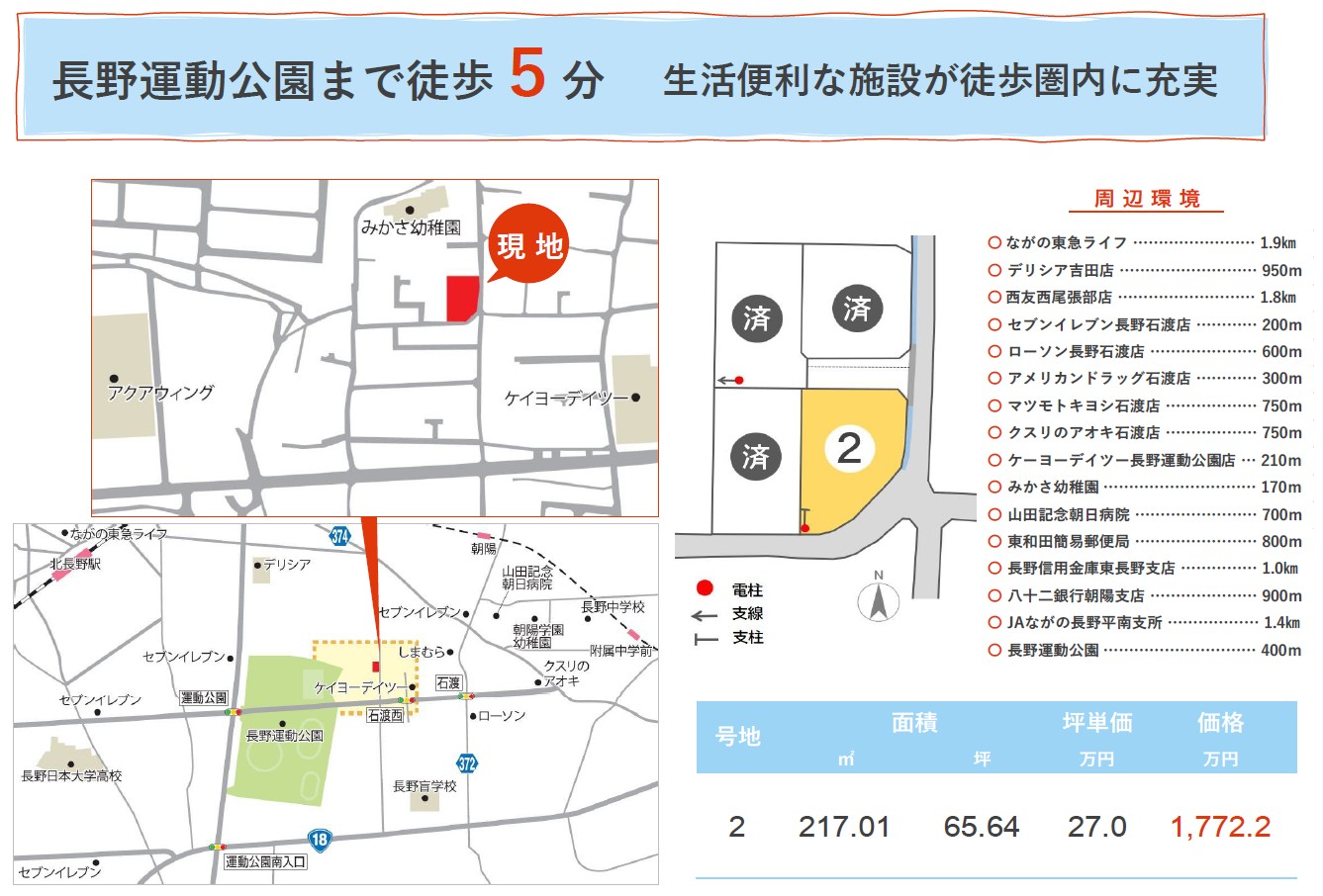 - 南側長野市道:幅員4.0m、東側長野市道:幅員4.0m