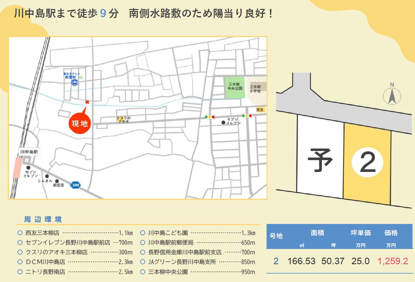 - JR信越本線「川中島駅」徒歩7分(700m)